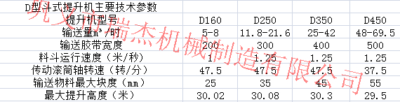 一.TD系列斗式提升機,是一種常用的提升設備,設備牽引件采用皮帶為傳動部分,主要適用于垂直輸送輸送粉狀,粒狀及小塊狀的無磨琢性及磨琢性小的物料.TD型斗式提升機主要參數參考圖: