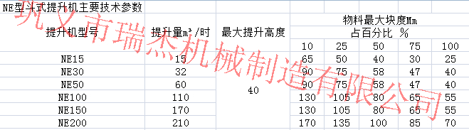 三.NE系列板鏈斗式提升機.NE系列板鏈斗式提升機是一種新型的斗式提升機,其采用板鏈傳動,區別于老型號TB系列板鏈斗式提升機,其命名方式采用提升量而命名而非斗寬。如NE150指的是提升量為150噸一小時而不是斗寬150。NE系列斗式提升機有著很高的提升機效率,根據提升速度不同還分有NSE型號及高速板鏈斗式提升機.NE系列斗式提升機主要技術參考圖: