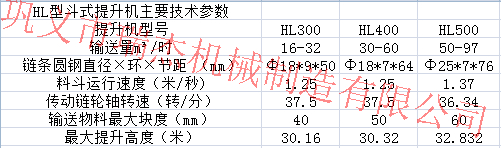 四.HL系列斗式提升機:HL型斗式提升機適用于垂直輸送琢磨型(硬度)較大的粉狀、粒狀、及小塊狀物料,如糧食、煤、水泥、碎礦石等,輸送高度40m,其特點為:結構簡單,運行平穩,掏取式裝料,混合式或重力卸料,輪緣采用組合鏈輪,更換方便,鏈輪輪緣特殊處理壽命長,下部如采用重力自動張緊裝置,能保持恒定的張力,避免打滑或脫鏈,同時在料斗遇阻時,有一定的容讓性能夠地保護運動物件,物料溫度不超過250℃.HL系列斗式提升機主要技術參考圖: